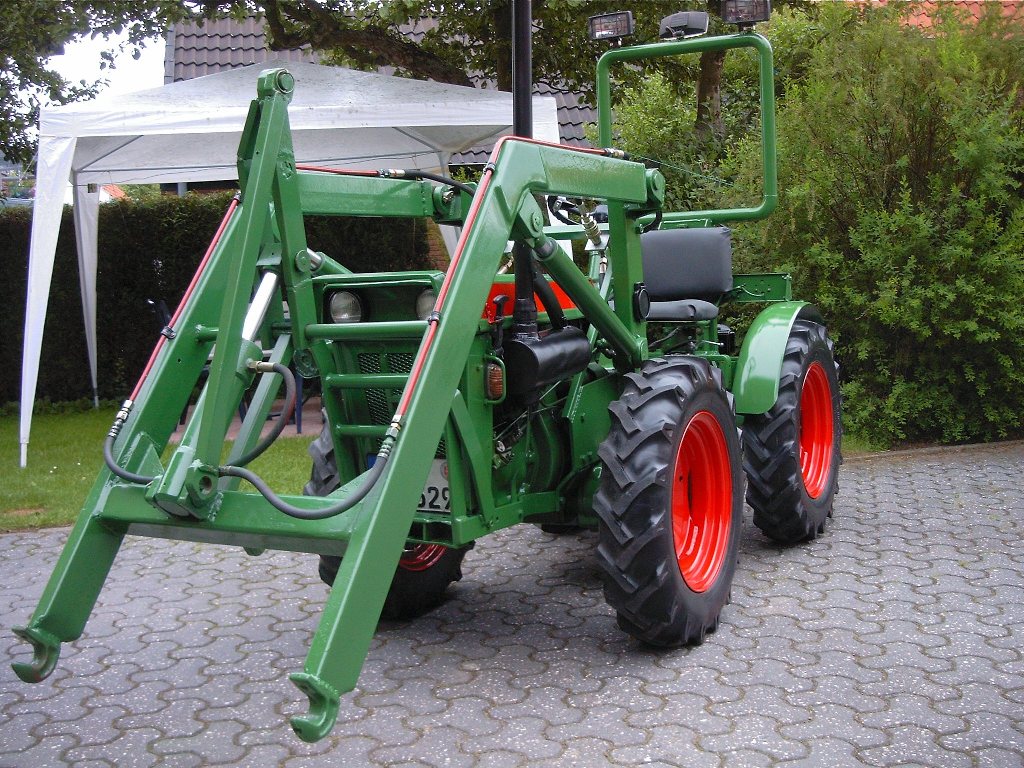 Einmal den Eigenbau Industriefrontlader, dafür hat er eine extra Hydraulikpumpe verpasst bekommen mit mehr Duchfluss