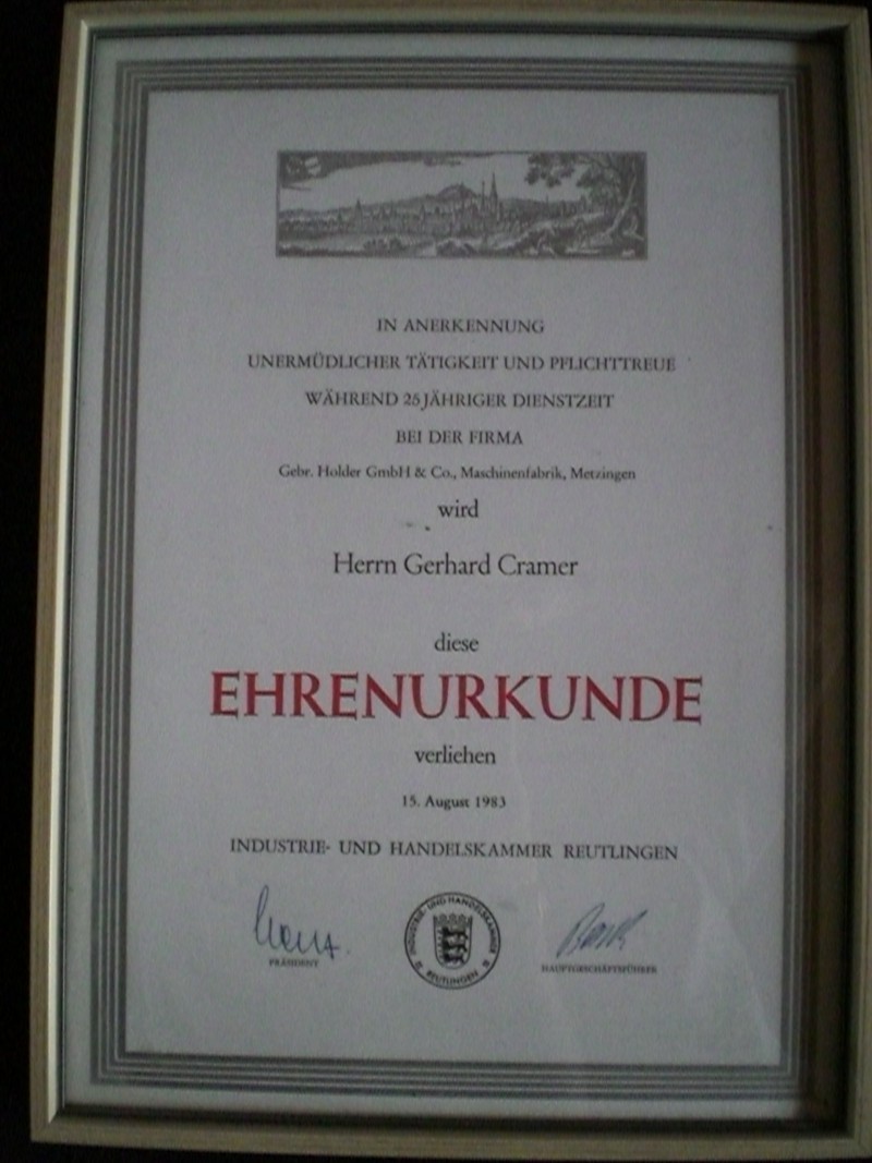 Stichworte:Ehrenurkunde Urkunde Holder Metzingen Reutlingen 1983